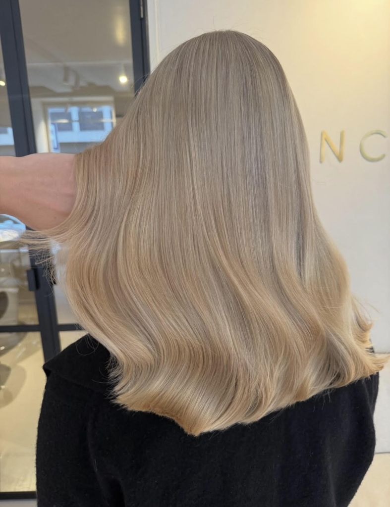Today, Josefine works independently from a calm, intimate studio setting in Copenhagen, where she rents space and focuses on giving each client her full attention. Clients know that when they book with her, they are not competing for her time. The “secret” behind her blond work—the kind that looks effortless and lived-in—is not a product or a formula, but time spent with a single person, listening as much as applying color.