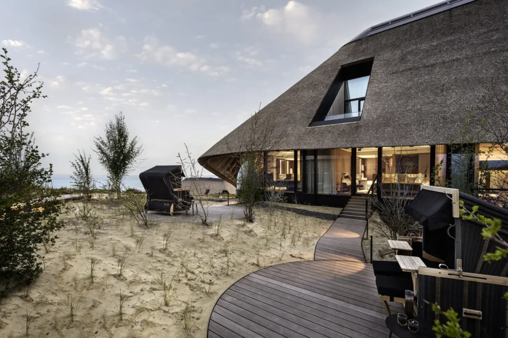 Lanserhof Sylt does not announce itself loudly. Approaching through the dunes of List, the structure appears almost camouflaged, its monumental thatched roof dissolving into the surrounding landscape. Designed by Christoph Ingenhoven and his studio, the building is widely cited as housing Europe’s largest contiguous thatched roof—a contemporary feat that pays homage to traditional Frisian architecture while reinterpreting it at an almost sculptural scale.