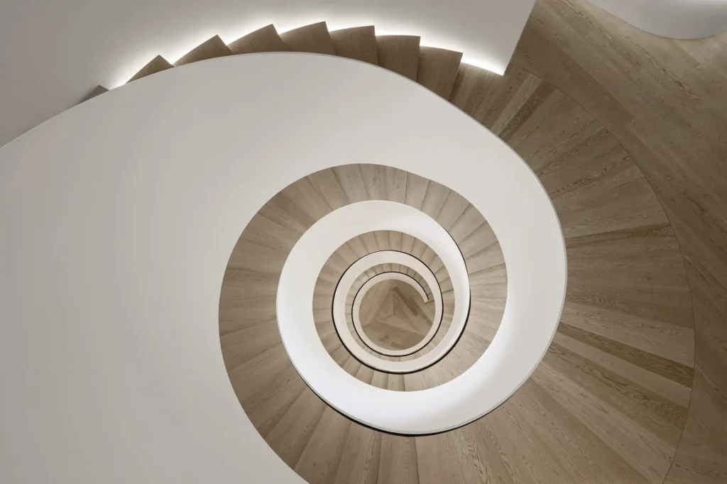 Inside, the design language continues with near-monastic consistency. Pale oak floors, limestone hues, soft plaster walls, and gently curved corridors create an atmosphere of controlled calm. There are no sharp contrasts, no decorative distractions. Furniture is low-slung, tactile, intentionally understated. Light—natural where possible, diffused where not—is treated as a material in its own right.